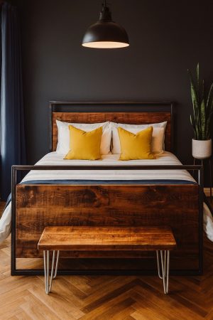 They are expertly handcrafted in our Nottingham workshop using mature, reclaimed wood and British steel. Our beds are distinguished by their solid wood headboard and footboard, as well as the strong industrial steel frame.