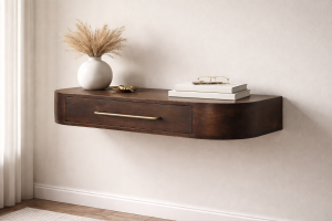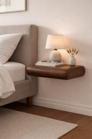 Wall Mounted Rounded Bedside Table – Solid Mango Wood Floating Nightstand