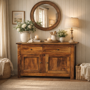 Chestnut Sideboard with 2 Drawers – Solid Hardwood Storage Cabinet
