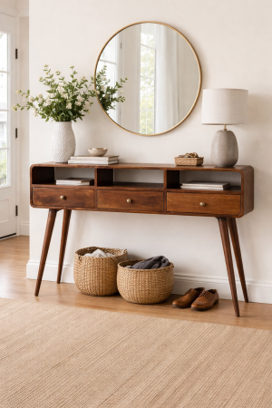 Three Drawer Console Table – Solid Hardwood Walnut Hallway Table