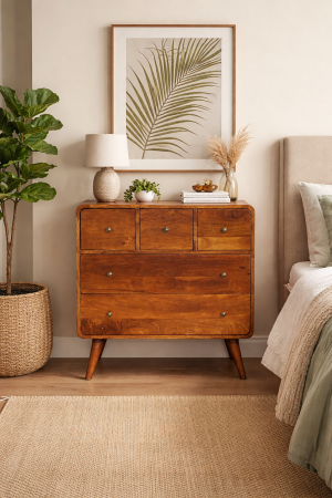 3 Over 2 Curved Chestnut Chest of Drawers – Solid Hardwood Storage Chest