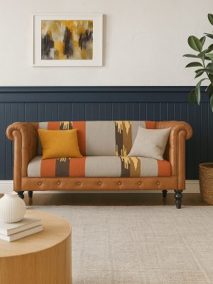 Durrie & Leather Mixed Chesterfield Sofa – Two Seater