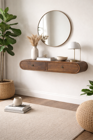 Floating Chestnut London Console Table – Wall Mounted Solid Mango Wood Console