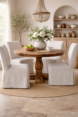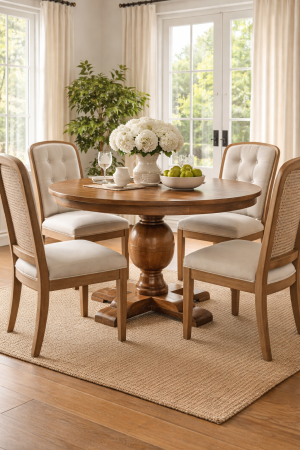 Valentina Round Dining Table – Solid Wood Pedestal Table for Classic & Modern Interiors