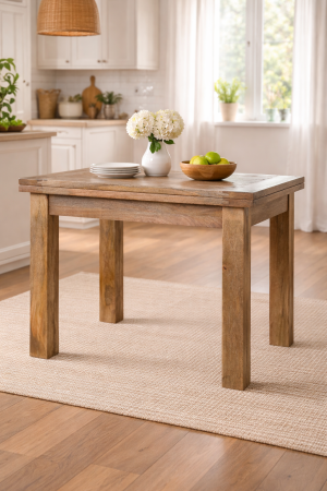 Extendable Butterfly Dining Table – Solid Mango Wood Table with Oak-ish Finish
