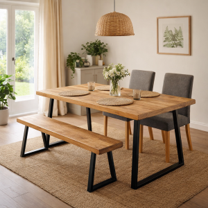Handmade Reclaimed Wood Industrial U Base Dining Table & Bench – UK Rustic Furniture