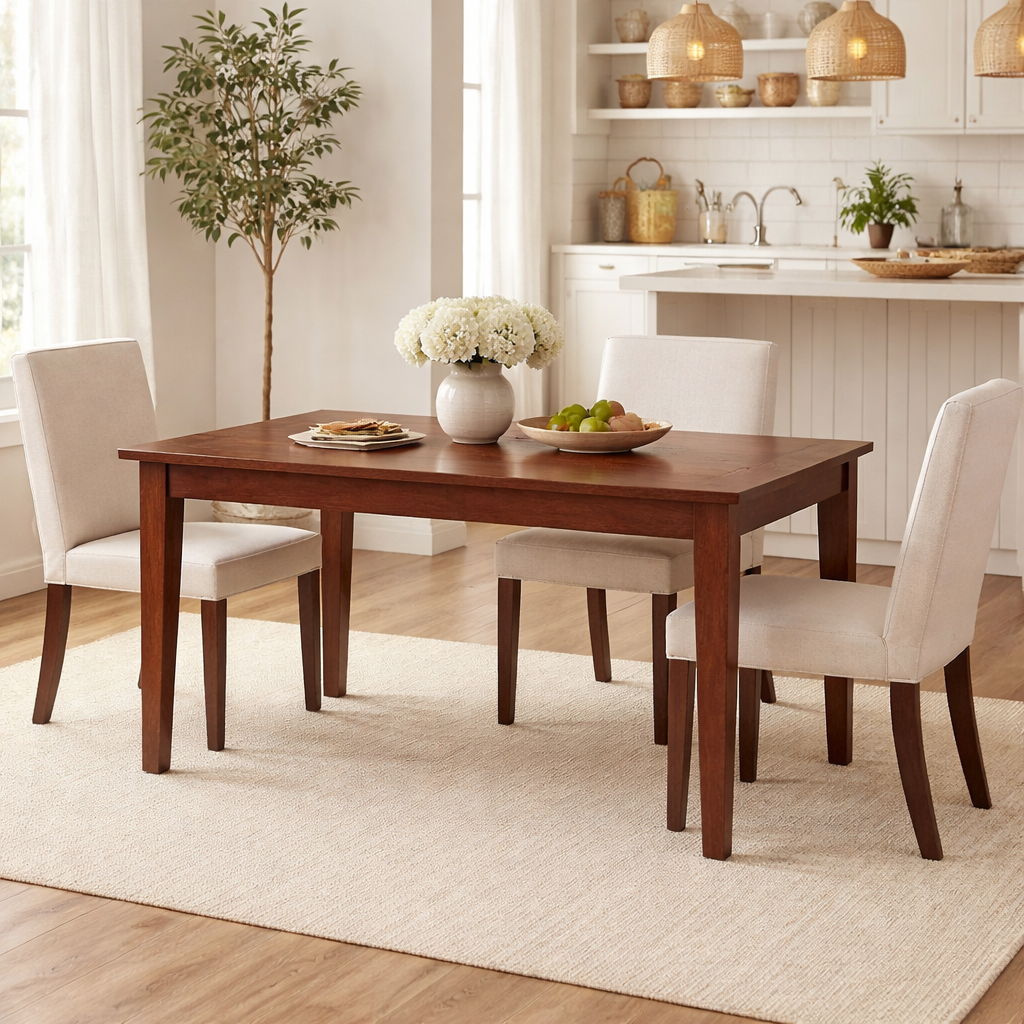 The Chestnut Dining Table is a refined expression of contemporary simplicity infused with natural warmth. Expertly crafted from 100% solid mango wood, this elegant dining table showcases a rich chestnut finish that highlights the wood’s natural grain, creating a welcoming focal point for your dining space.