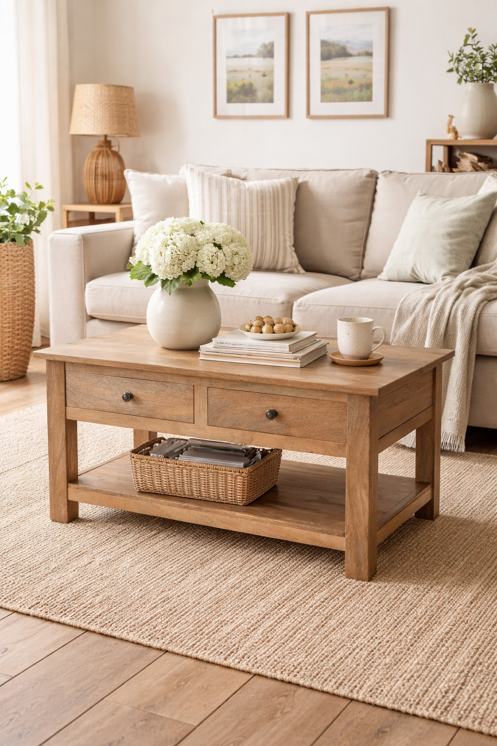 Add timeless charm and practical storage to your living space with this Country Style Oak-ish Coffee Table, beautifully handcrafted from 100% solid wood. Designed to bring warmth, character, and everyday functionality into your home, this coffee table blends classic country aesthetics with thoughtful modern living.