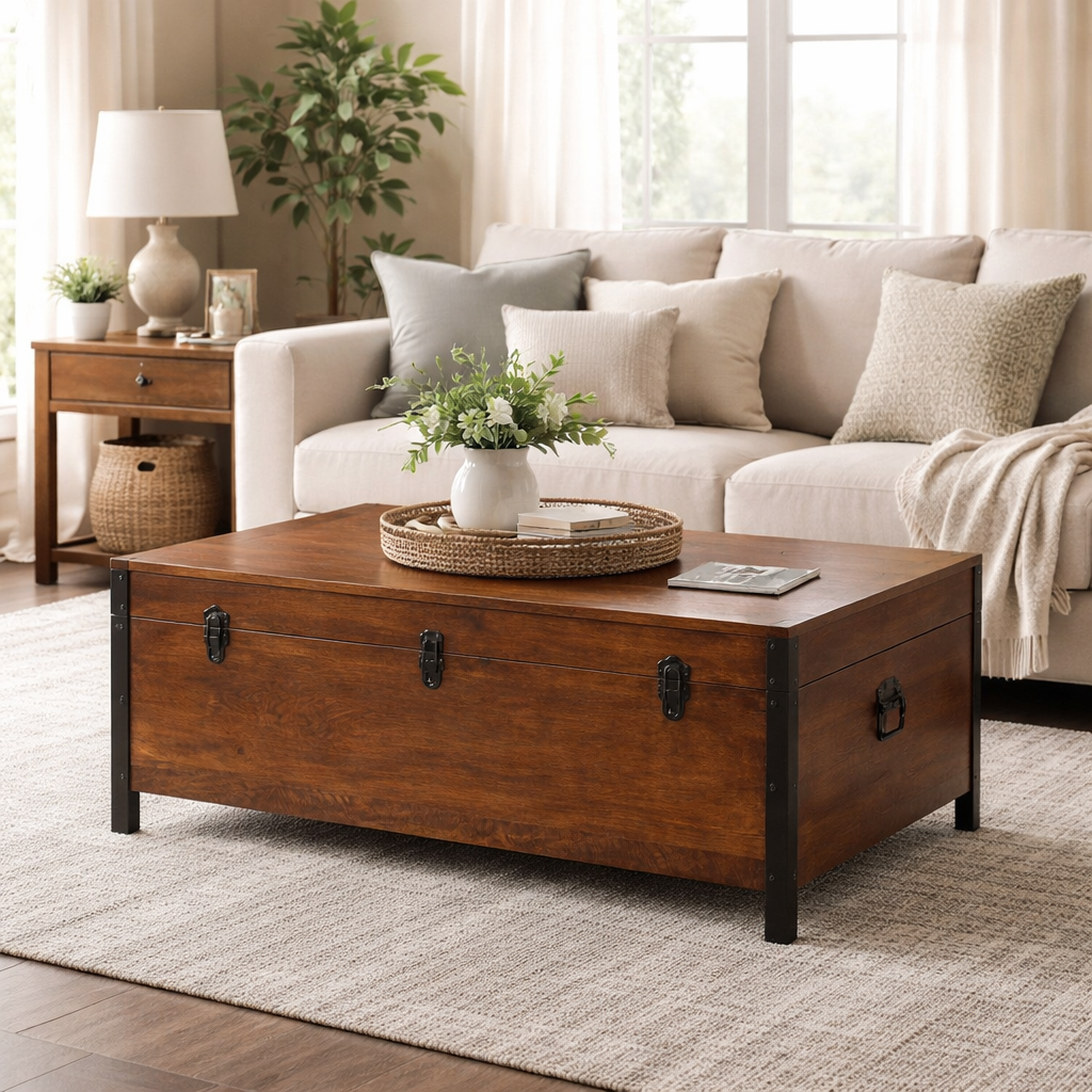 The Industrial Lid Up Blanket Box is a practical and stylish storage solution that combines durable craftsmanship with versatile design.