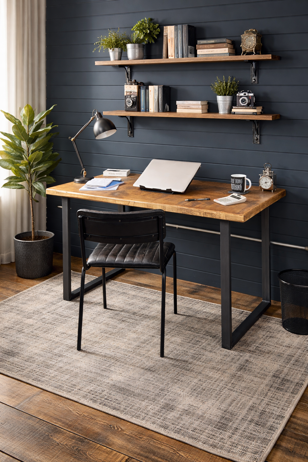 Industrial U Base Desk – Handmade Solid Wood Home & Office Workstation
