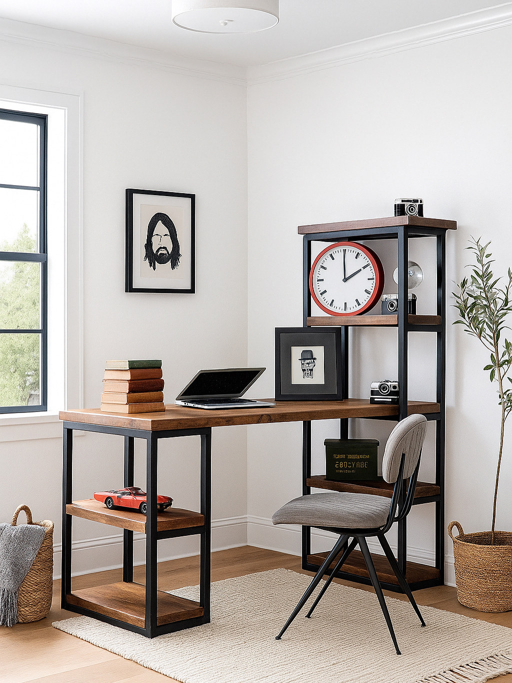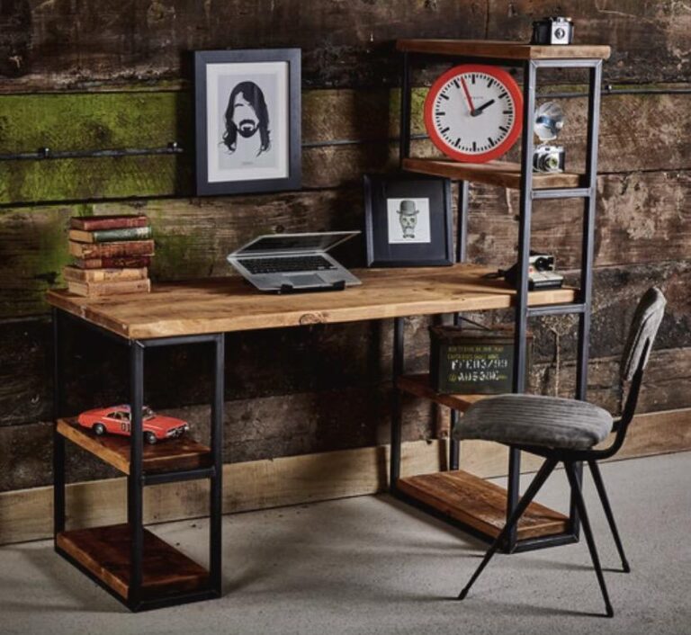 Beautiful solid wood office desk, ideal for home or work use with steel legs, all crafted here in the UK. This unique style has a shelving unit built in to the desk on one side, which is reversible to have it on the left or right. As all items are made completely from scratch, all measurements can be altered to suit your specific needs. Just get in touch via the message board. We offer 4 standard sizes in the drop down menu.
