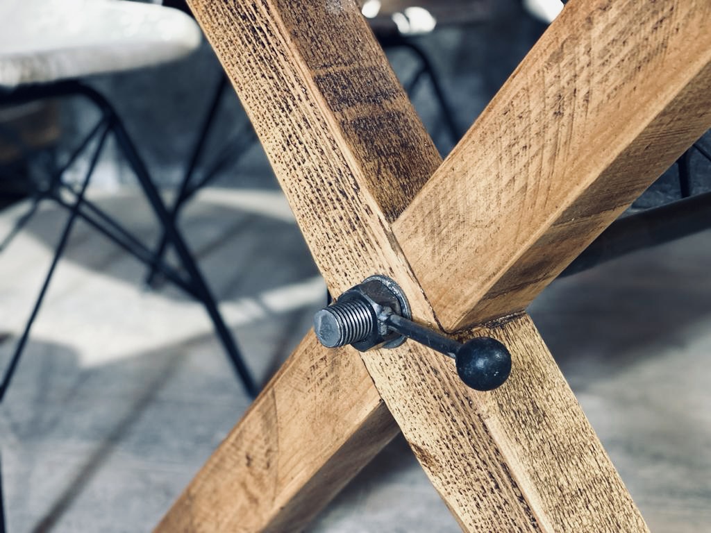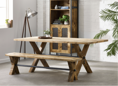 Reclaimed ‘X Frame’ legs made from solid timber.
