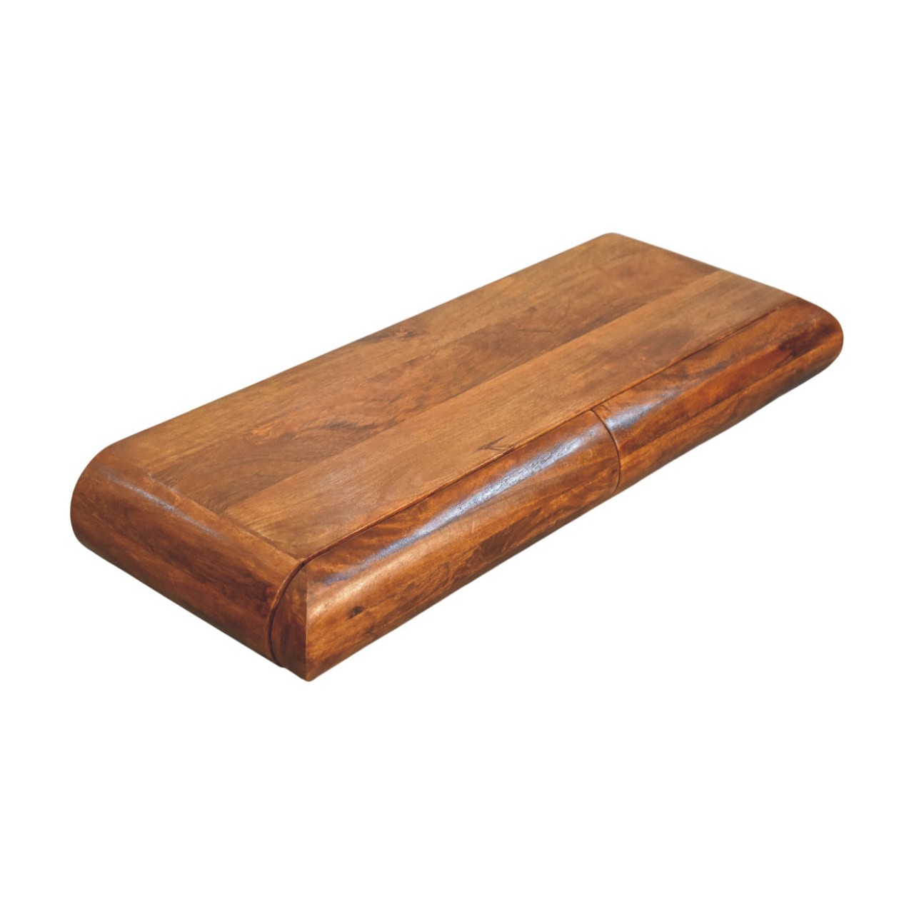 Expertly made from 100% solid mango wood, this low-profile media unit showcases a warm chestnut finish that highlights the rich natural grain of the wood. The finish adds depth and warmth to your room while maintaining a refined and minimalist aesthetic that suits a wide range of interior styles.