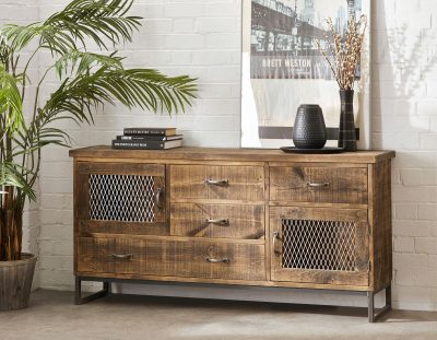 Our solid wood large cabinet from our ‘Stamford’ range with mesh doors and drawers.