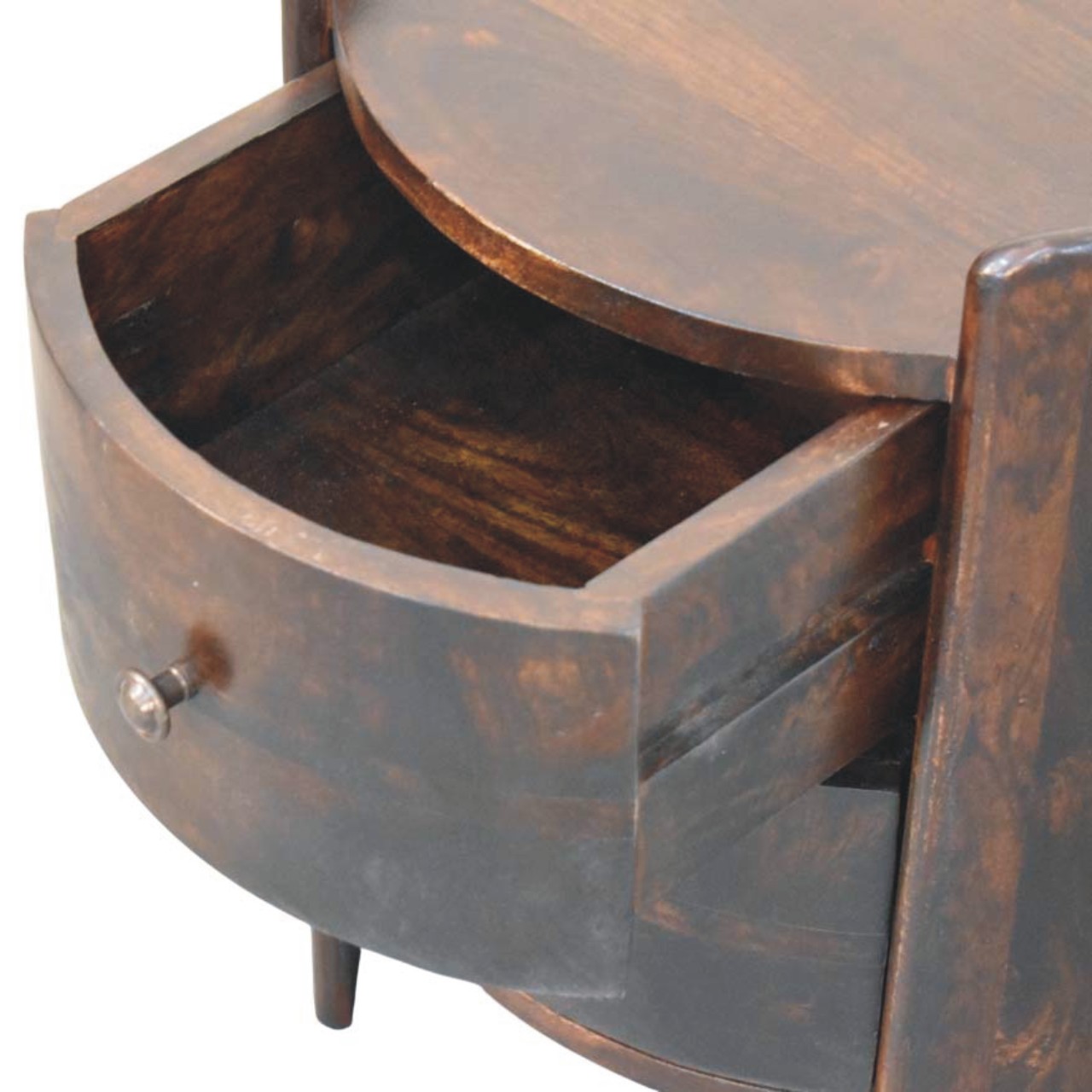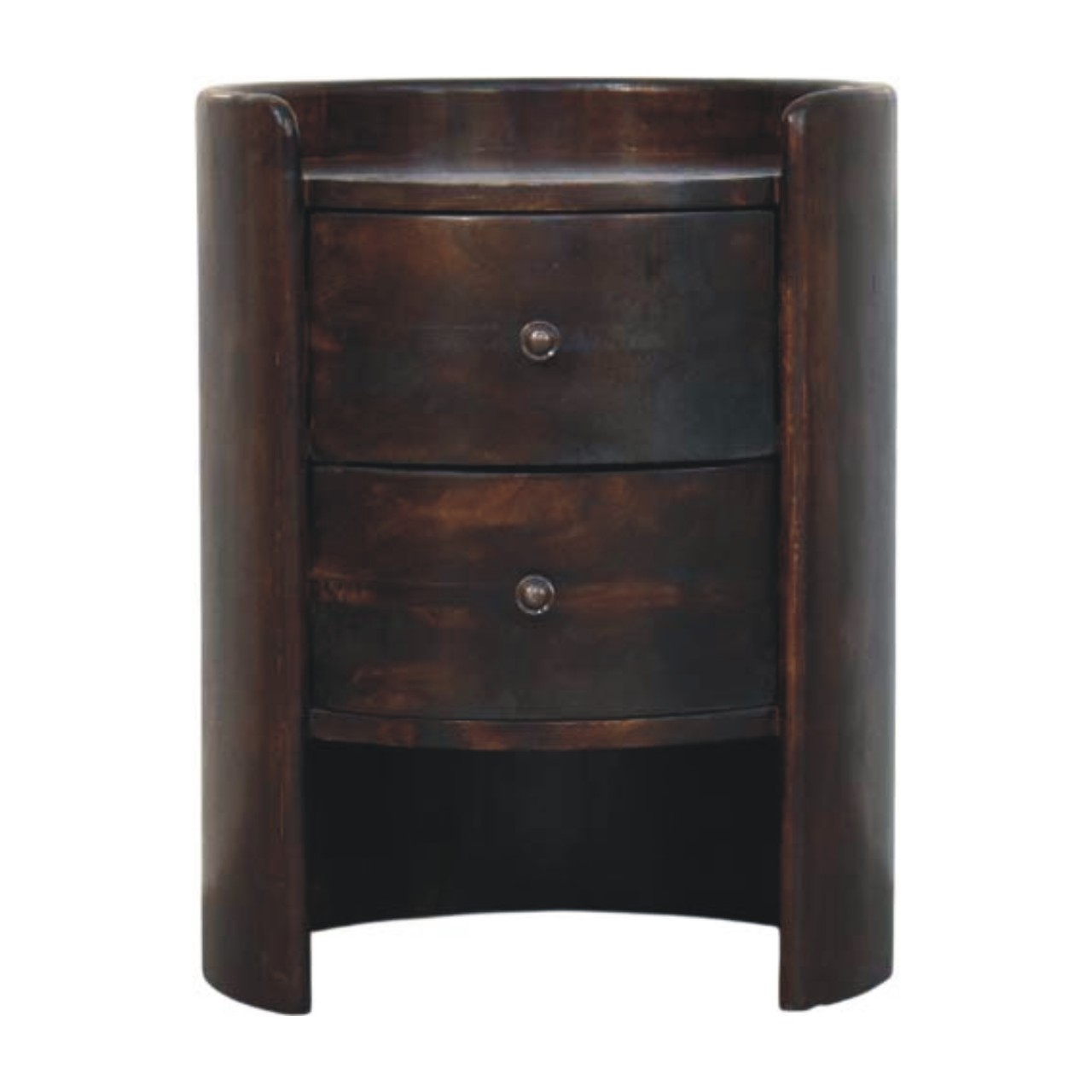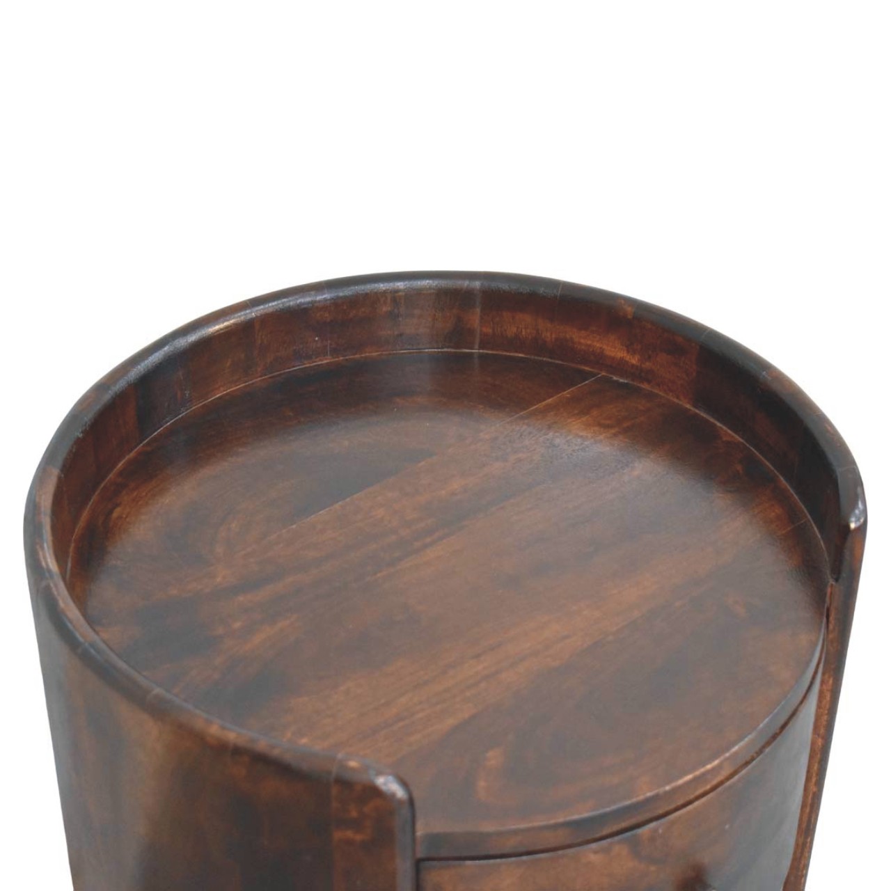 Velvet Mocha Round Side Table – Solid Hardwood Bedside Table with Drawers